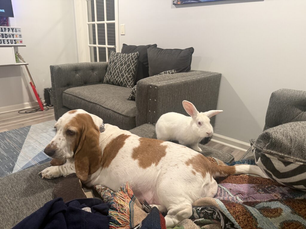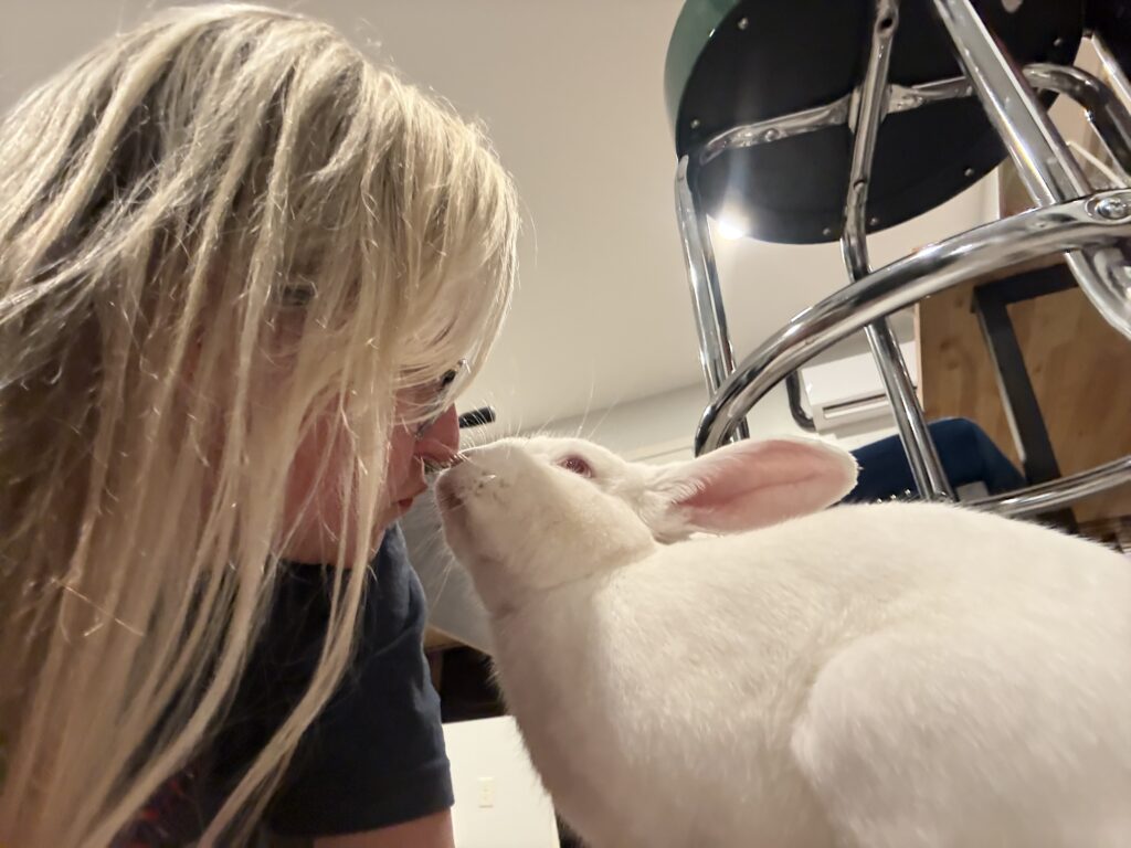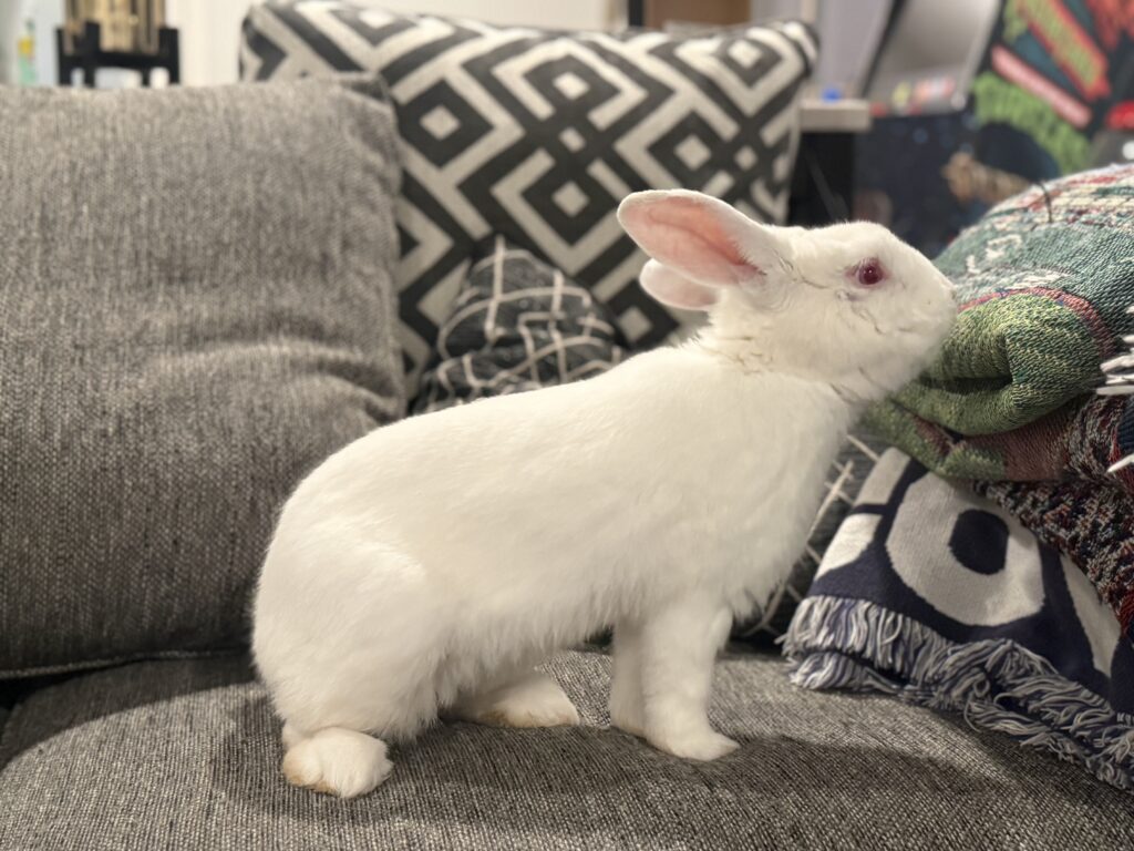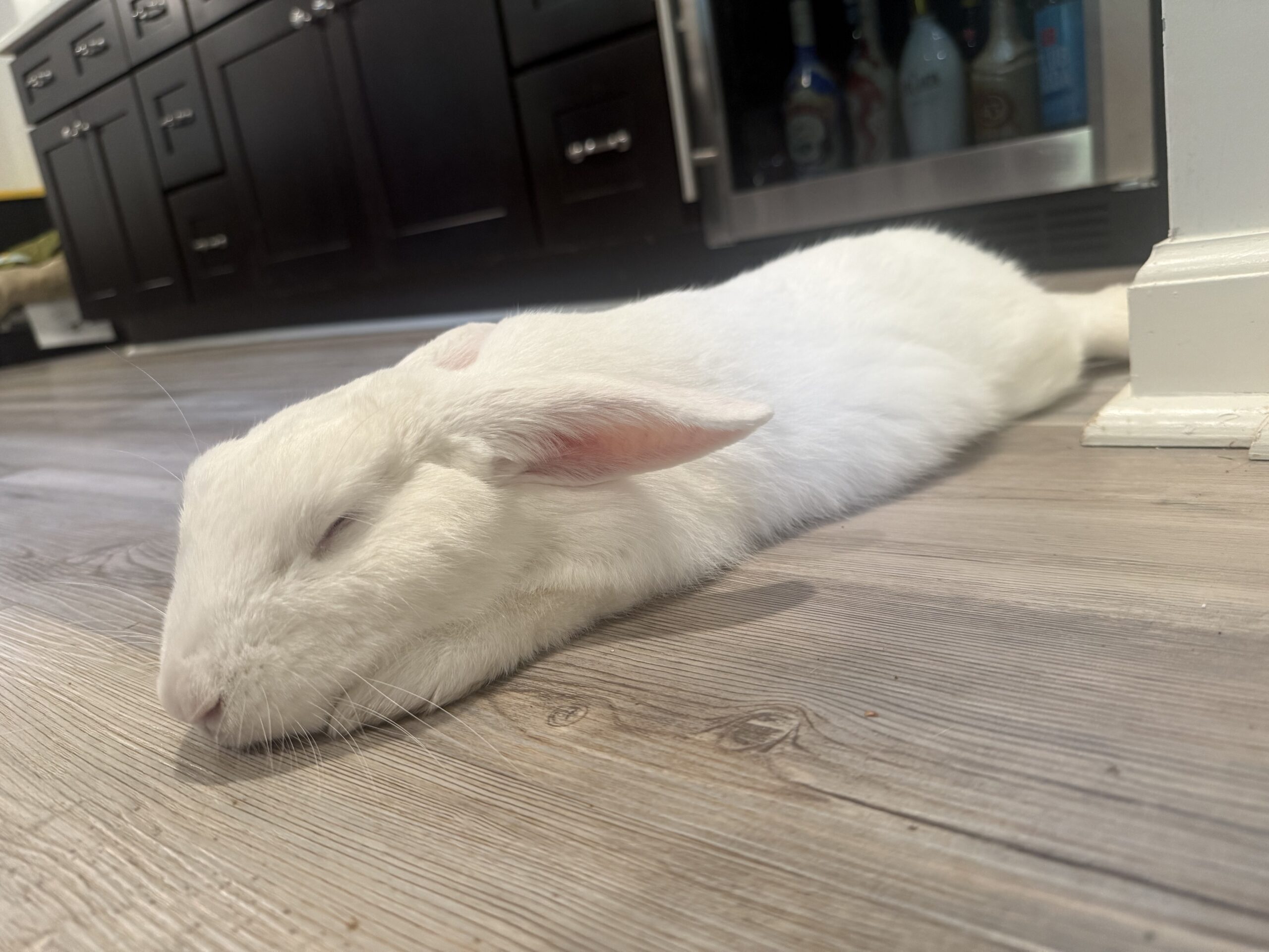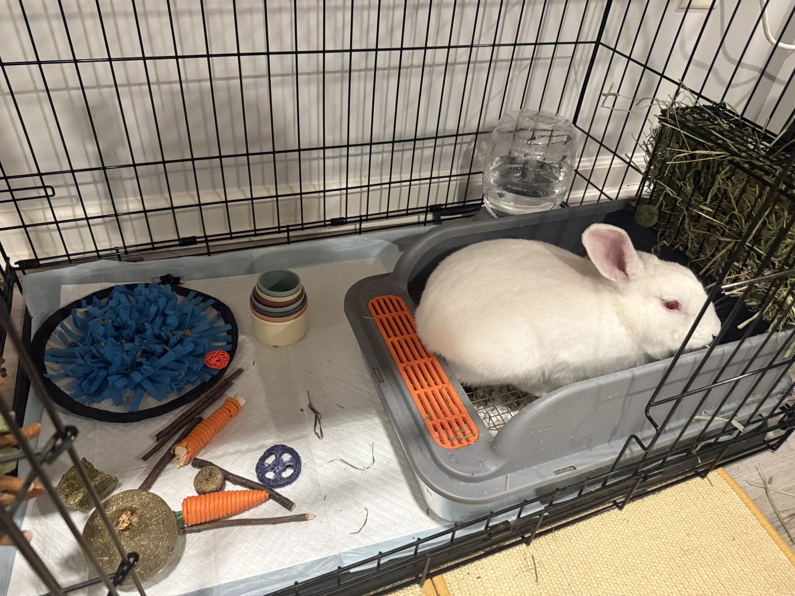 Give a description of the rabbit's temperament and personality traits.Meet Baby Bun Buns, a two-year-old soul who proves that the best things come in small, fluffy packages. Buns’ story didn't start with a soft bed. Baby Bun bun was found peacefully nibbling on a patch of sweet clover, completely unaware of the pair of hawks circling directly above. When we reached out, he didn’t run; he hopped right to us, tucking his chin as if to say, "I’ve been waiting for somewhere safe." Since that day, Baby Bun Buns has blossomed into the ultimate family companion. Despite his rough start, he is a social butterfly who thrives on being part of the family. Why you’ll fall for him: A Total Sweetheart: He’ll nudge your hand for head-scratches and melt into a bunny pancake the moment you pet him. The Gentle Roommate: He is friendly with children and has lived peacefully alongside calm dogs. Litter Box Pro: He’s fully litter-trained and keeps his space tidy—a true gentleman! Easy to Handle: Unlike many rabbits, Baby Bun Buns is used to being picked up and snuggled. Buns is currently an intact male, and while his sweet personality shines through, he’ll need to be neutered soon to ensure he stays healthy and happy in his forever home. He’s spent two years waiting for a place to truly belong. Could your home be the "happily ever after" Buns has been dreaming of?
