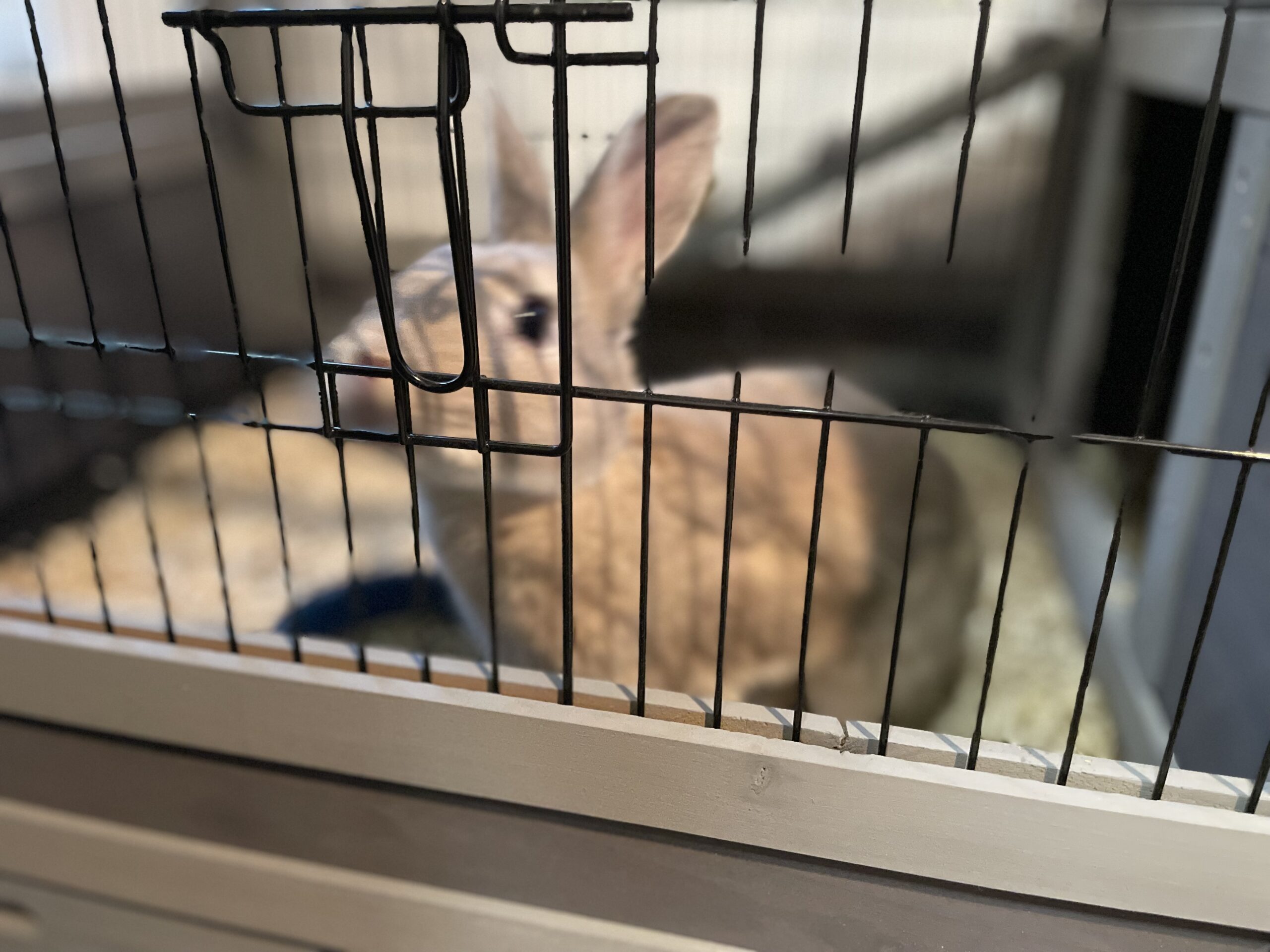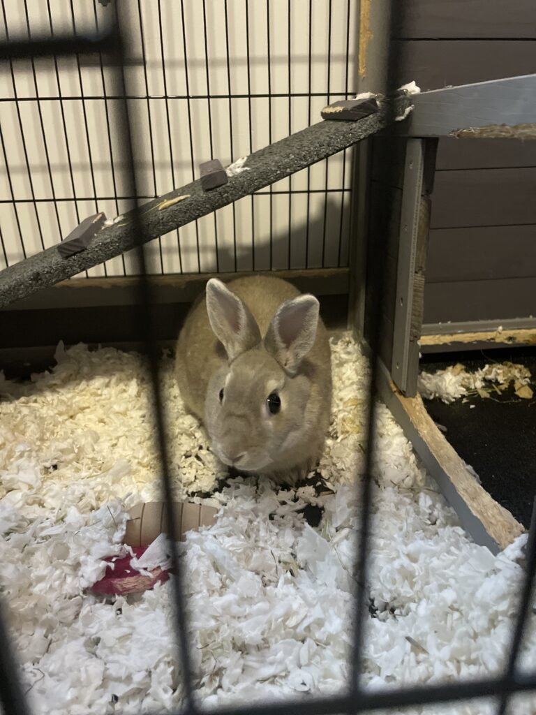 Give a description of the rabbit's temperament and personality traits.Buggs is very mild mannered and easy going