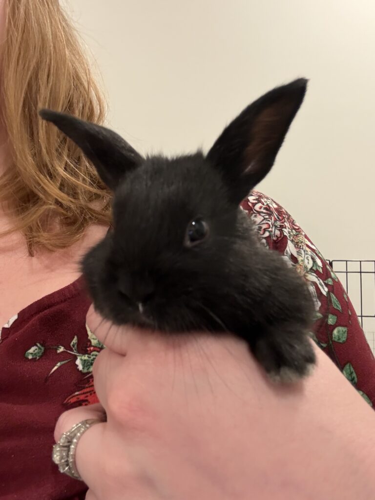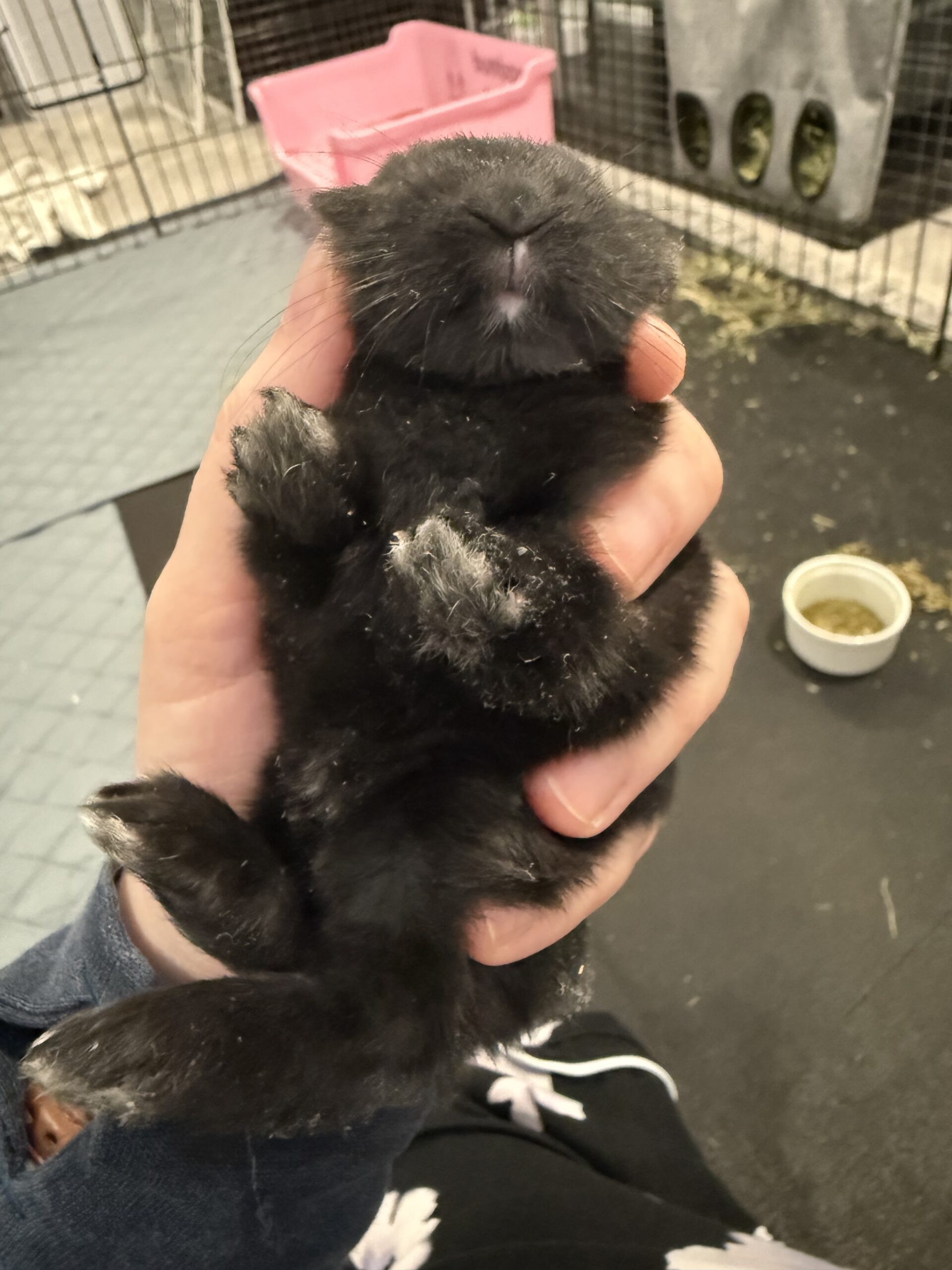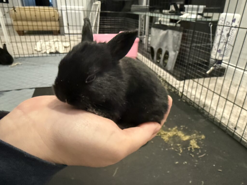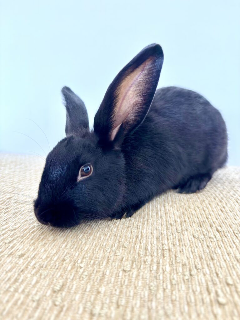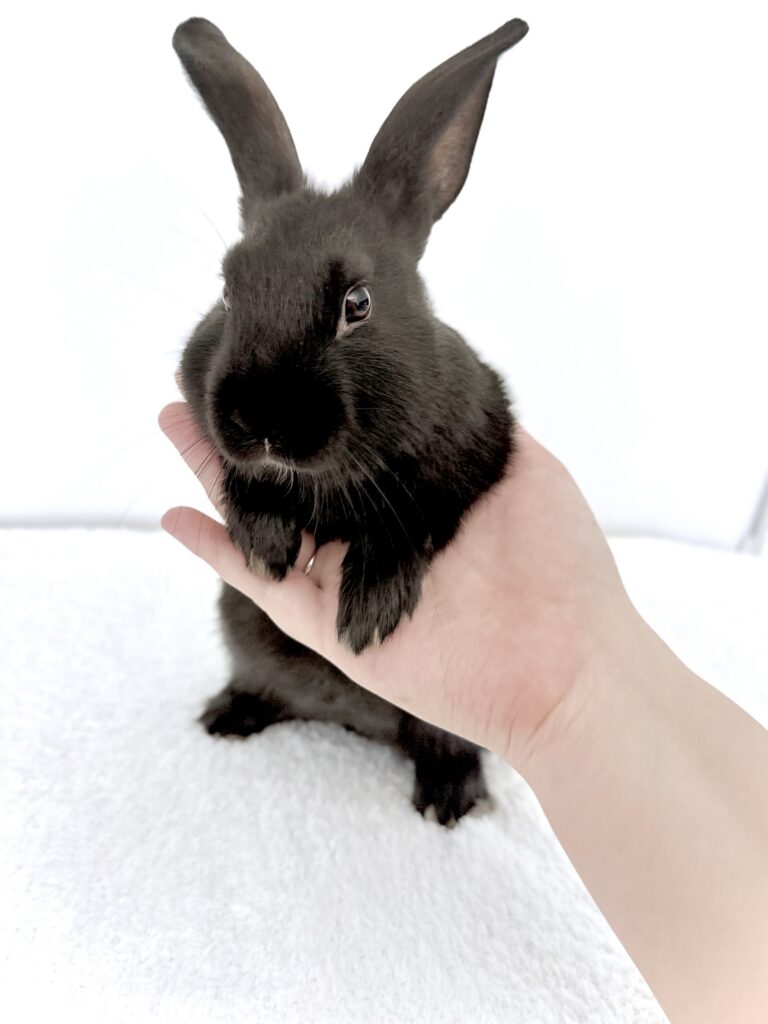 Give a description of the rabbit's temperament and personality traits.Sweet baby boy was born to an abandoned mama who was already pregnant when rescued. He loves his meal times and runs up for pets. His brothers and sisters have all found their forever homes, so he’s searching for his perfect family. Willing to travel to a great match.