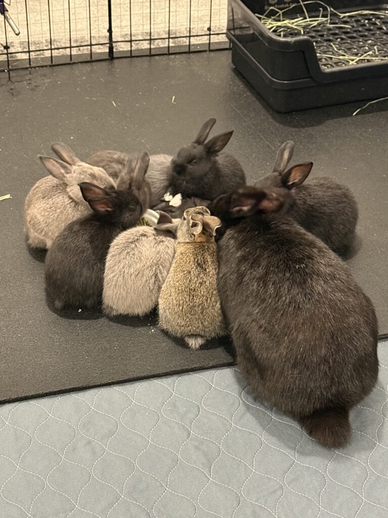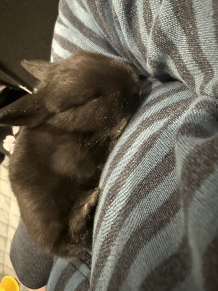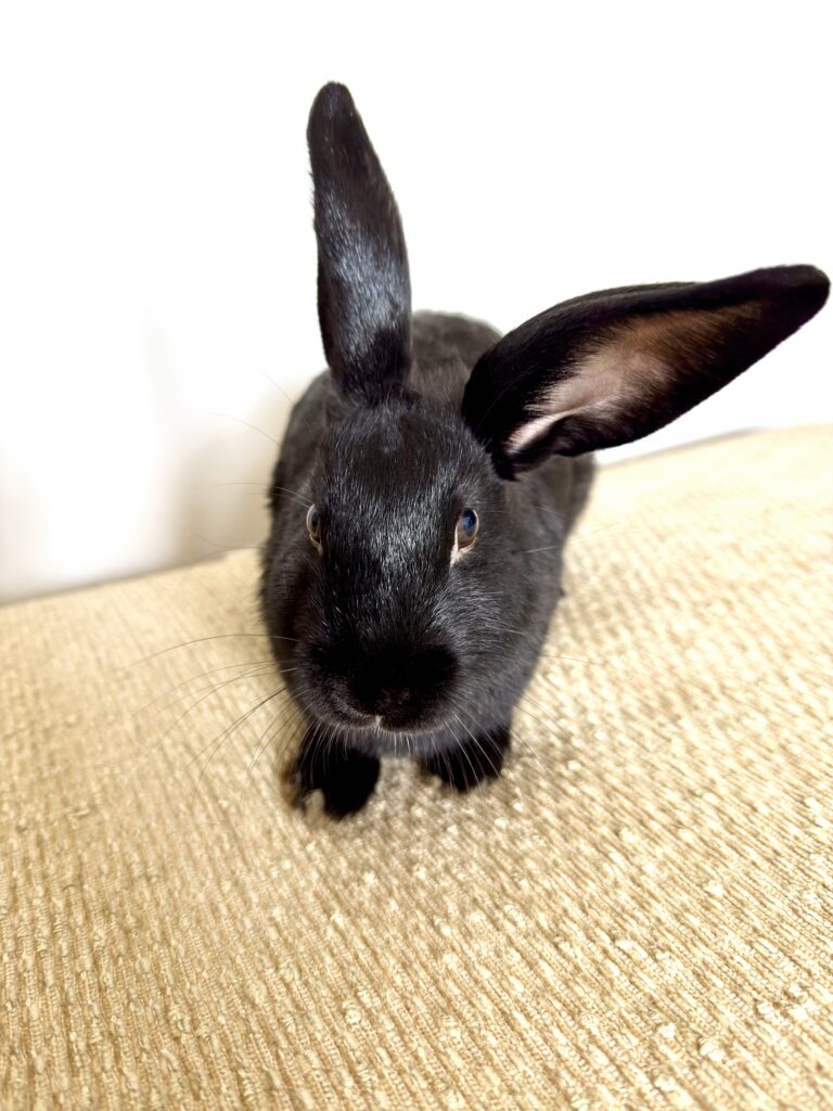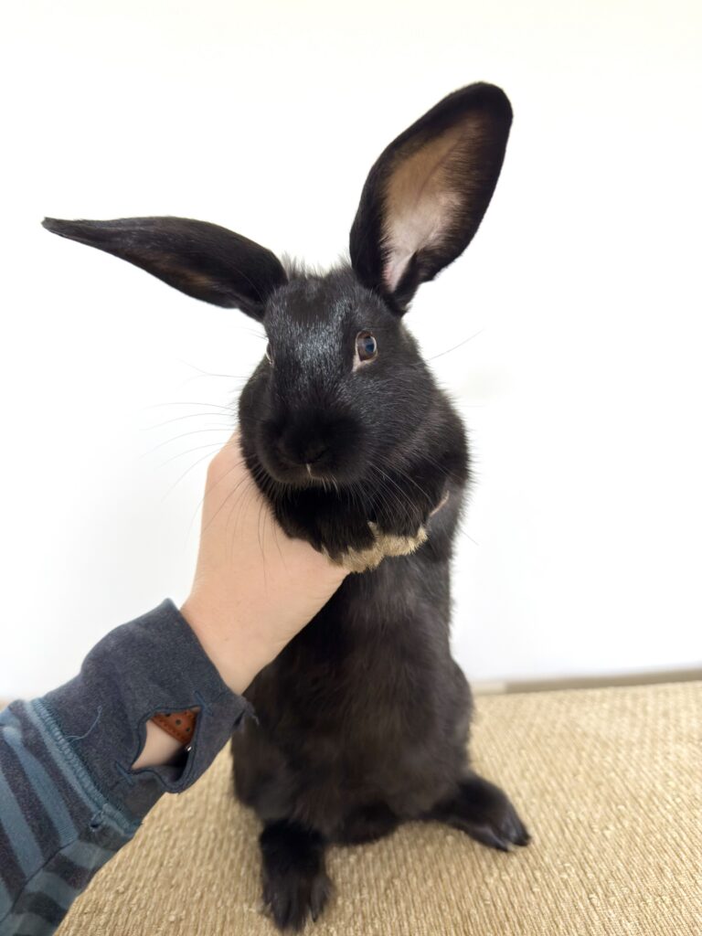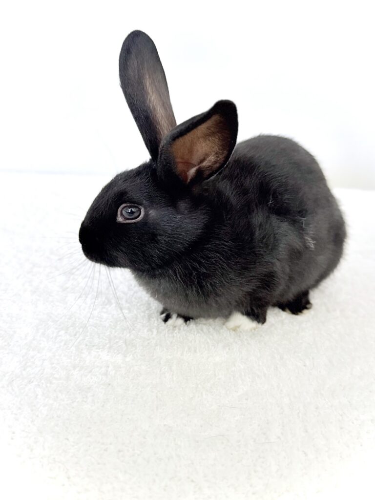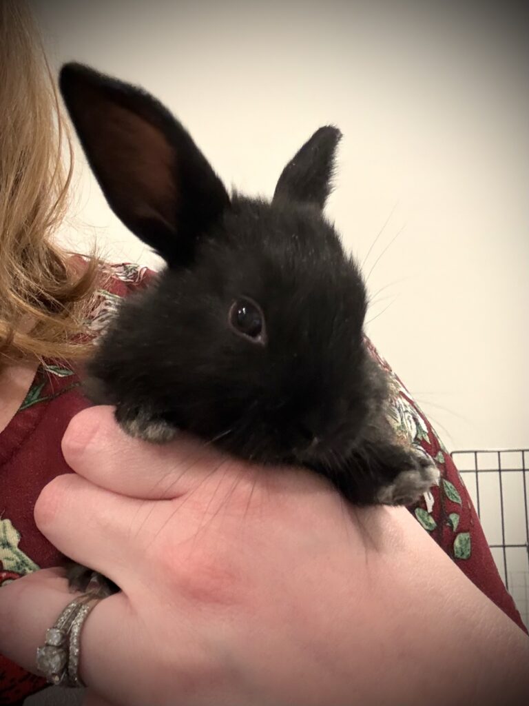 Give a description of the rabbit's temperament and personality traits.Sweet baby boy was born to an abandoned mama who was already pregnant when rescued. He loves his meal times and runs up for pets. His brothers and sisters have all found their forever homes, so he’s searching for his perfect family. Willing to travel to a great match.