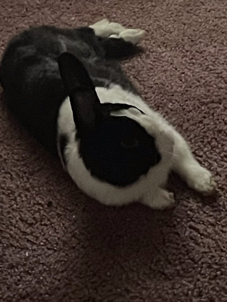 Give a description of the rabbit's temperament and personality traits.Rocky is a spunky little rabbit with a big personality, he doesn’t do well with cats or dogs though