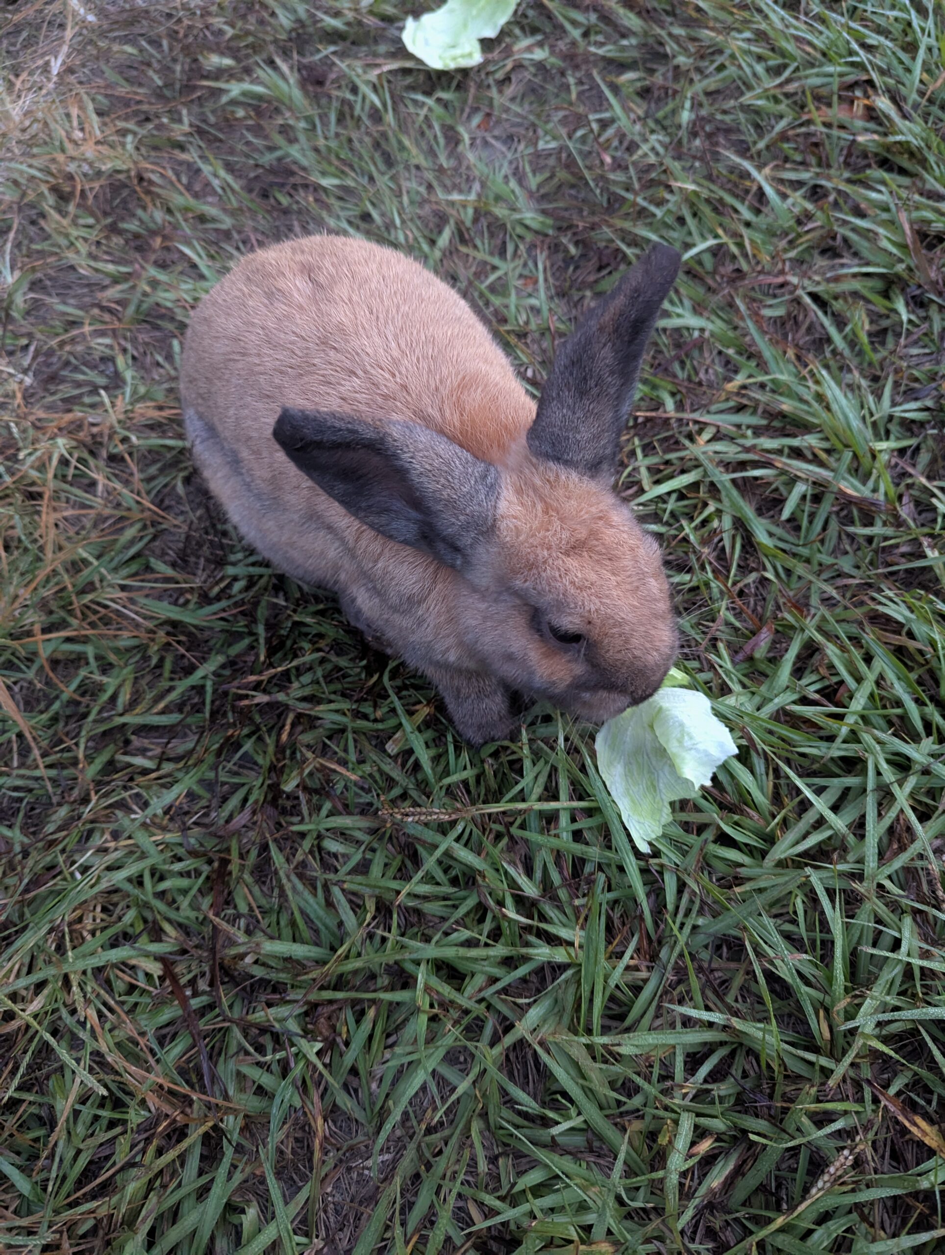 Give a description of the rabbit's temperament and personality traits.He or she is pretty relaxed but does often get bursts of playfulness and energy. He will usually hop up to greet us in the morning and if we sit with him he or she will nuzzle us.